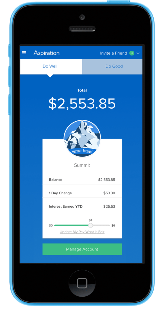 Earn up to $500/year on savings (up to 5.00% apy*, 83x the national average rate) when you switch over to aspiration and spend with a clean conscience.. The four biggest banks in america lend more than $210 billion of their customers' money to fossil fuel projects, every year. Aspiration is 100% committed to clean money. Nor any of its subsidiaries is a bank. Aspiration is a completely online bank. In fact, your deposits are fdic insured up to $2 million. Earn up to $500/year on savings (up to 5.00% apy*, 83x the national average rate) when you switch over to aspiration and spend with a clean conscience.. · sign up for aspiration to start spending, saving, and investing with a conscience.